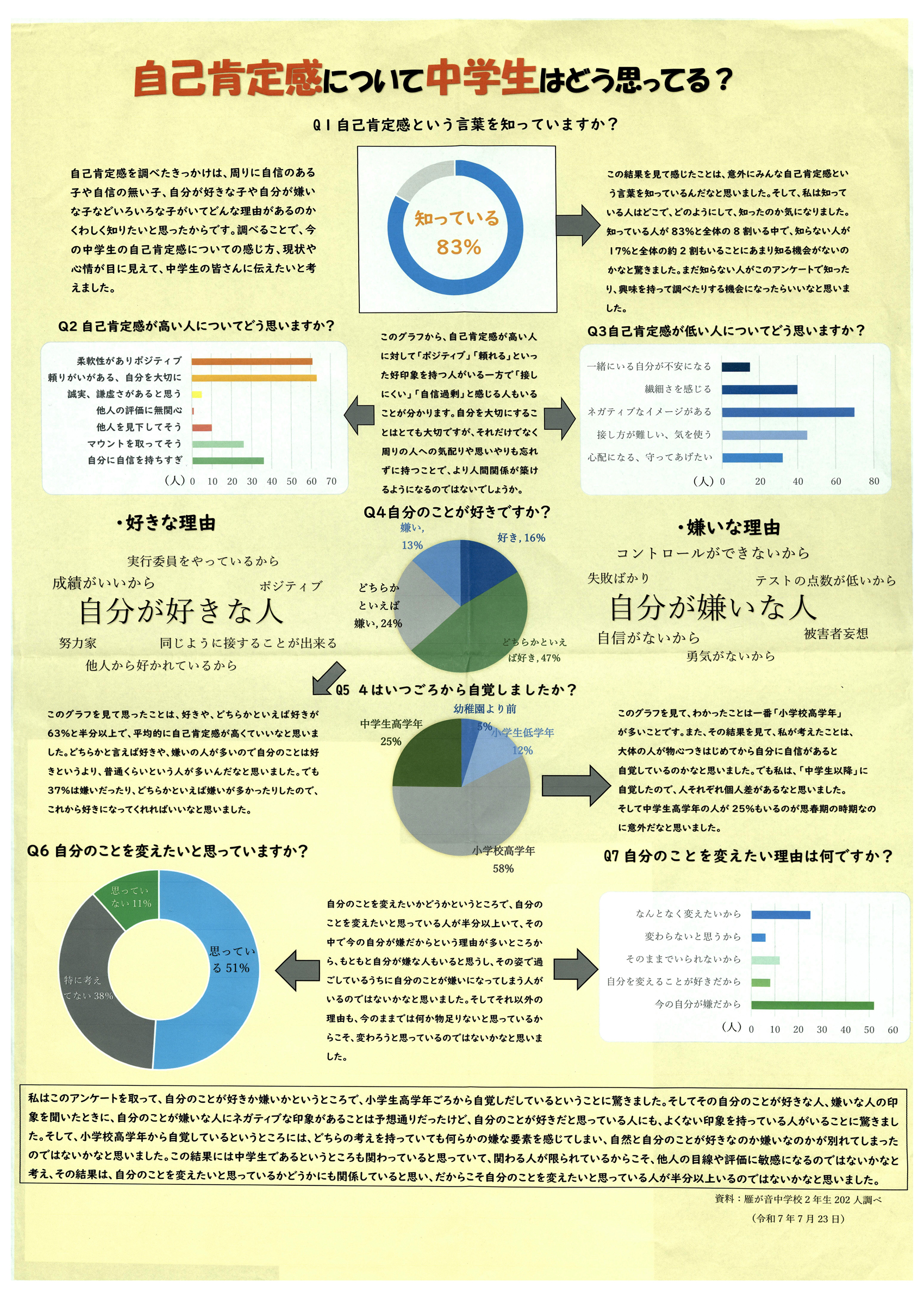 テーマ | 自己肯定感について中学生はどう思ってる? |