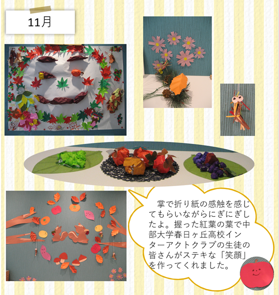 このほかにも、音楽の集い、ハンモック、アロマタッチなどなどいろいろな活動をしています。