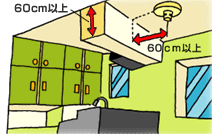 はりから、警報機の中心を、60cm以上離して設置してください。