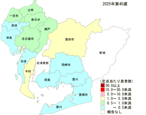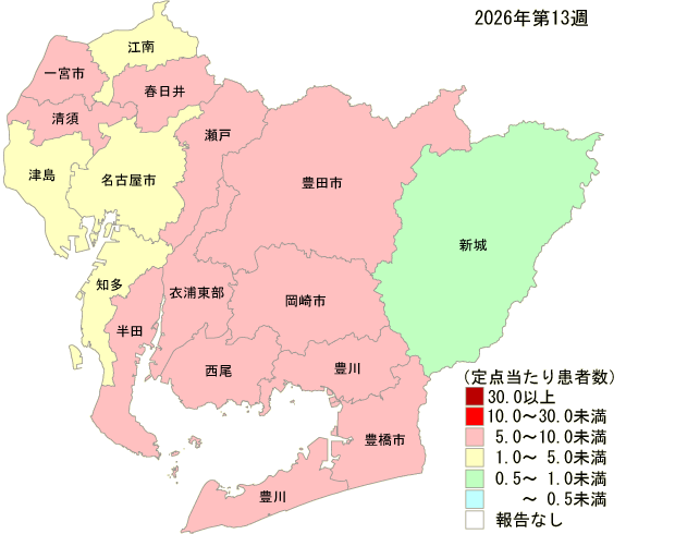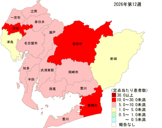 保健所別・定点医療機関当たりのインフルエンザ報告数マップ