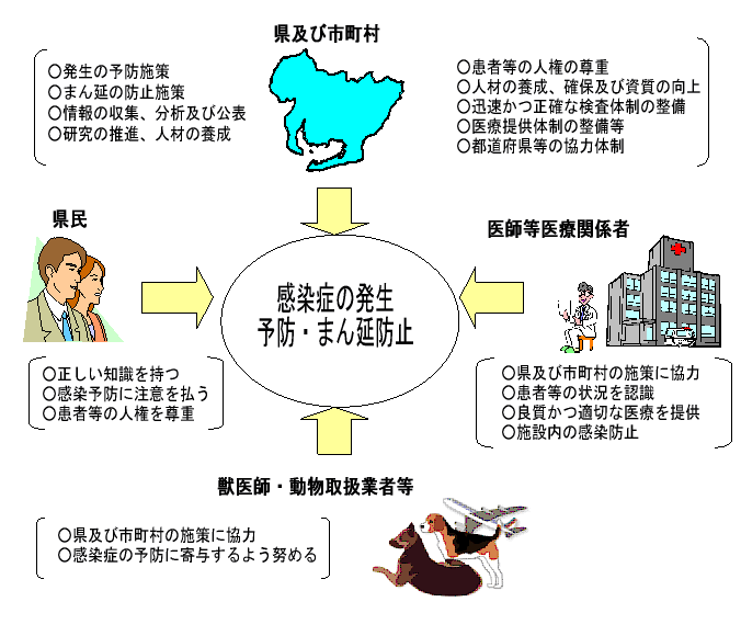 県民個人個人における予防及び感染症の患者に対する良質かつ適切な医療の提供を通じた早期治療の積み重ねによる社会全体の予防を推進する。