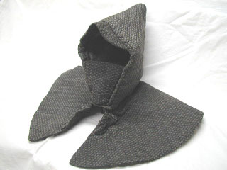 戦時中、空襲時に火災や落下物などから主に頭部を保護するために備えていた頭巾。特に女性や子供が着用していた。布地・綿入りのため、完全に火を防ぐことは困難であったことから、水に濡らしてから着用した例もあったという。(この防空頭巾の内側には「名札」と「お守り」が縫い付けてあった。)
