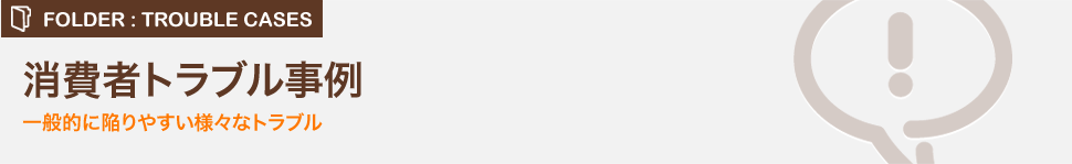 消費生活相談窓口に寄せられた相談(一部、県政相談でお受けした相談を含みます。)の内容と法律のポイントを、100の事例で紹介しています。