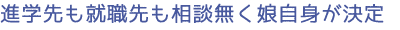 娘は大学進学の際は保育士の資格が取れる大学に入りたいとは言っていましたが、進学先を決めたのは娘自身。就職先を決めるときも特別相談はありませんでした。学生時代に実習でお世話になった法人にそのまま就職し、まだ1年目です。