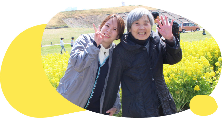 介護のお仕事は、その人たちが行きたい場所、楽しみたいことなどをあきらめることなく「~したい」という思いを大切にします。