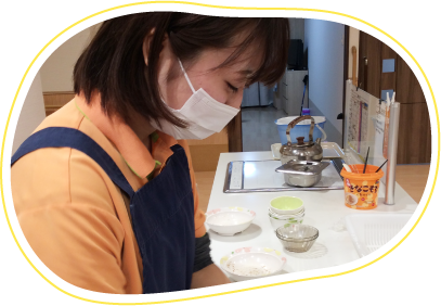 入居者様の気持ちに寄り添いながら、日常生活のお手伝いをしています。お手伝いの具体的な内容としては、食事介助、排泄介助、入浴の介助などを行っております。