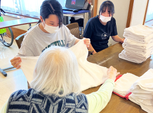 介護士さんが全てやってあげているのかと思っていましたが、入居者さんと一緒に洗濯物を畳んだりして楽しそうでした。