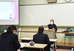 出前介護講座では現場で働きながら大学で教えていらっしゃる先生と、身近な施設で働いていらっしゃる介護職員の方のお話を聞くことで、生徒たちは仕事としての介護をきちんと捉えてくれました。本来であれば体験実習に行き、直接利用者さんと関わることで、いろいろ見えてきたり感じることもあったかと思いますが、講師の先生方が現場の話をたくさんしてくださり、理解を深めることができました。
