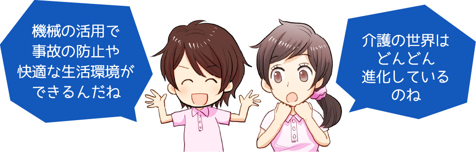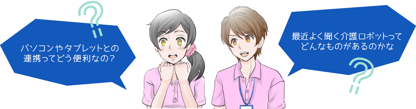 介護機器は、介護者の負担軽減や利用者の自立支援を図るために重要なものです。その介護機器にロボット技術を活用した「介護ロボット」によって、介護の質と生産性の向上が期待されています。同時にICT化も介護職員が行政に提出する文書等の作成に要する時間を効率化し、介護サービスの提供に集中する上でも重要であると言えます。