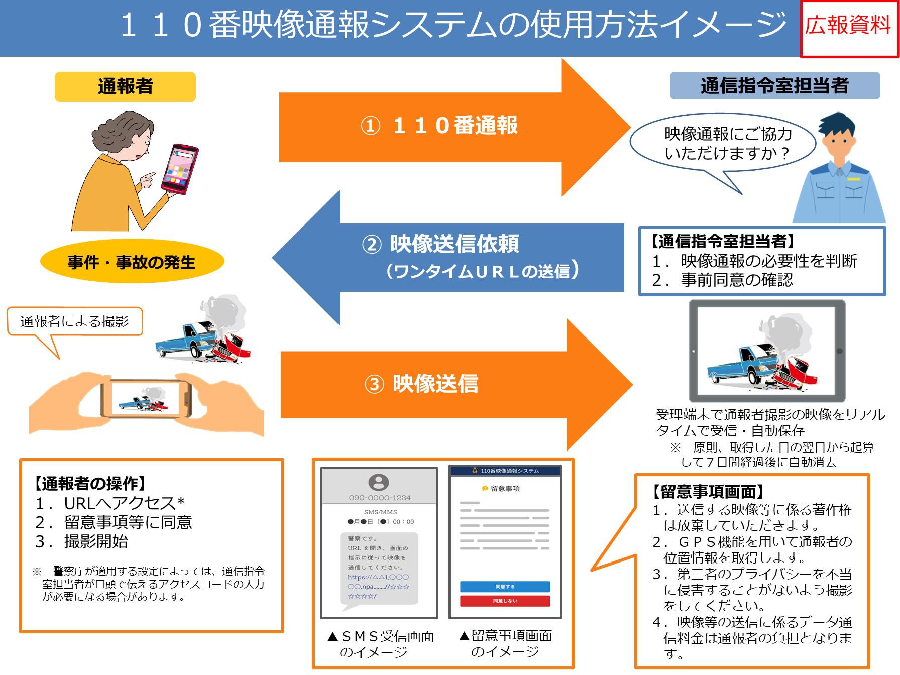 110番通報時に、受理担当者から映像通報のお願いをすることがありますので、可能な範囲でのご協力をお願いいたします。