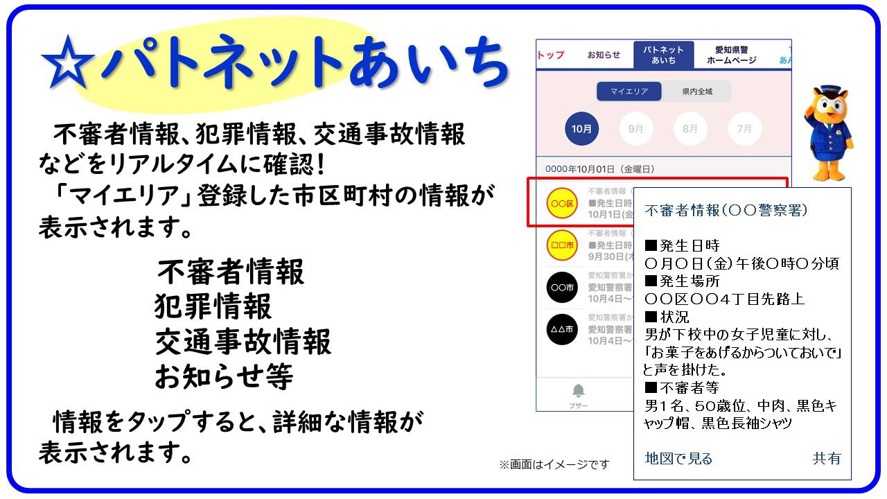 「パトネットあいち」閲覧機能 ~警察の配信情報をリアルタイムに~