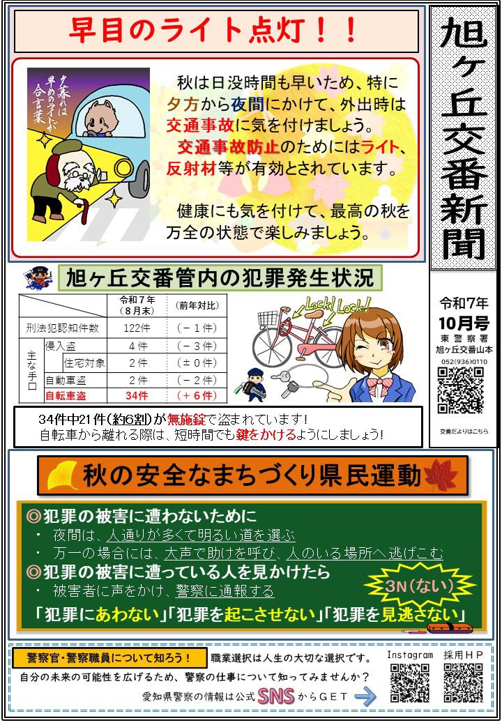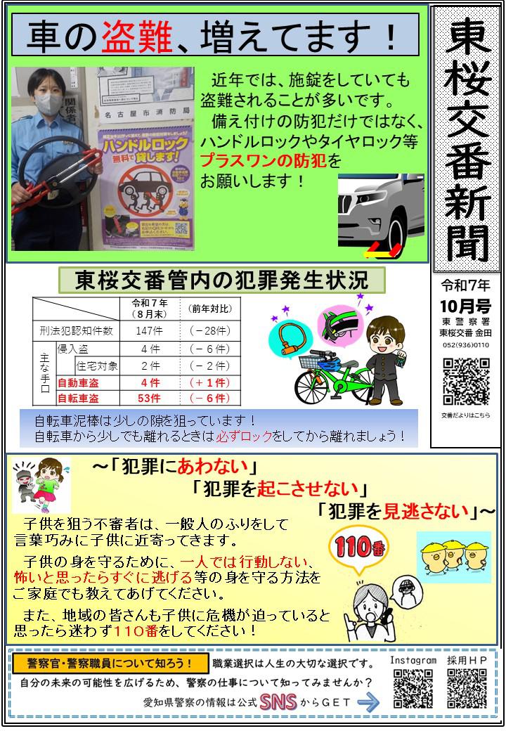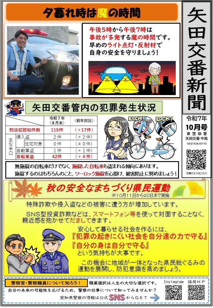 交番のお巡りさんが作成した交番新聞や交番速報、東地域安全だよりを掲載します。