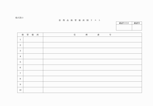 拾得品の保管状況は、会計年度終了月に、拾得品保管場所別リスト(様式第13)により確認すること。