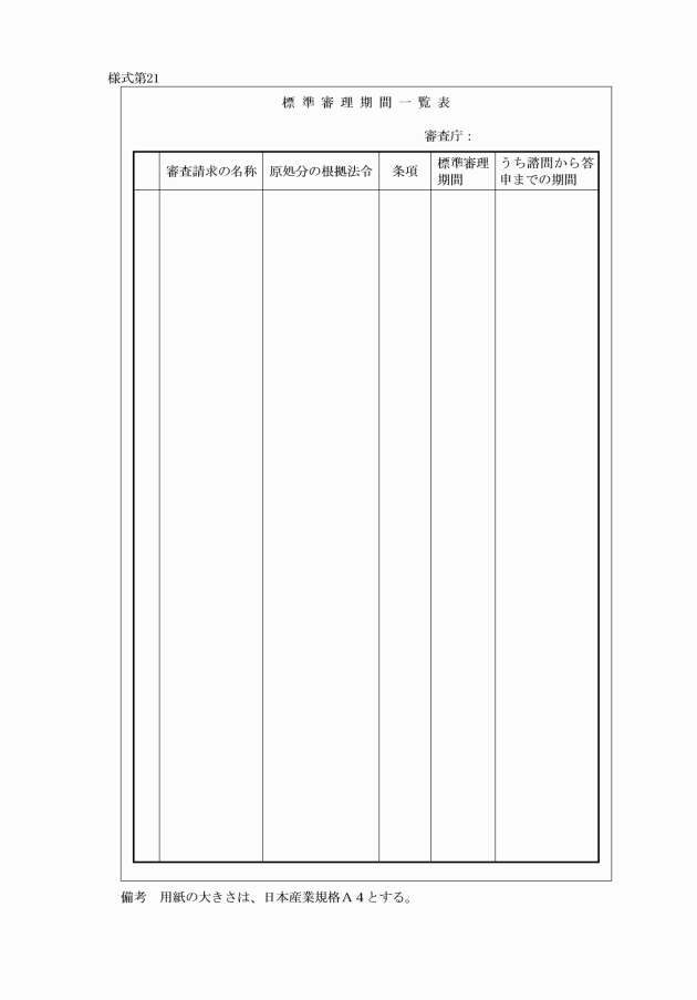1 監察官室長は、必要に応じて標準審理期間が定められたときは、標準審理期間一覧表(様式第21)を作成するものとする。