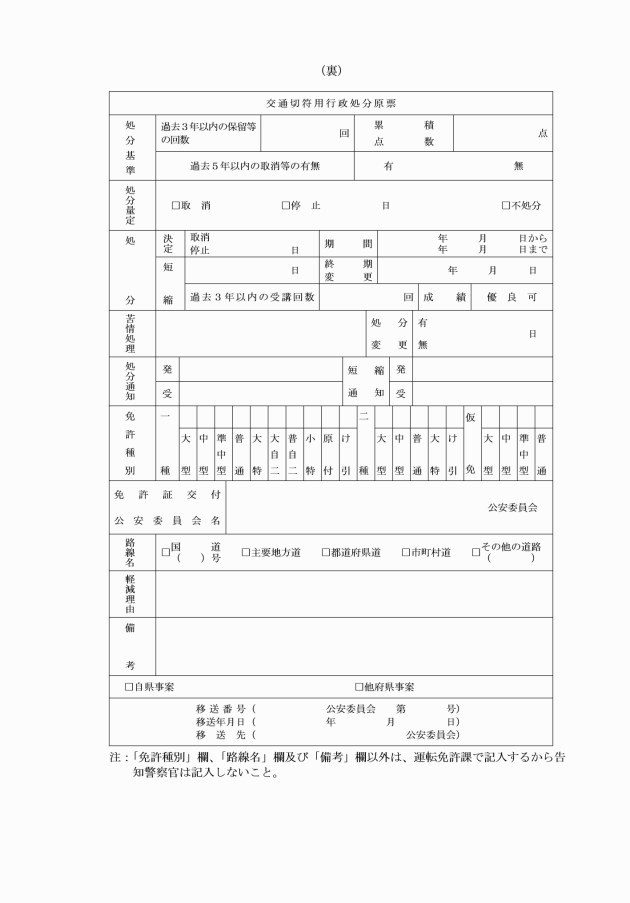 〔昭46交指・交免発甲93号・本様式全部改正、昭47交指発甲73号昭48交指発甲19号昭53交企発甲52号昭57交免発甲4号昭60交指発甲3号昭62交企・交指・駐対・交制・交管発甲16号平元交指発甲50号平2交企・交指・交駐・務警発甲44号平3務警発甲28号平4交指・交免発甲44号交免・交総・交指・交規・交試・交東免・務警発甲46号平6交総・務警・交指・交駐・交免発甲44号平8交総・交指・交制・交免・交試・交東免発21号平14交指発甲136号平16交指発甲126号平18交指・交総発甲89号平20交指・交免発甲138号平22交指発甲135号平25交総発甲223号平29交総発甲30号令4交指発甲48号・本様式一部改正〕