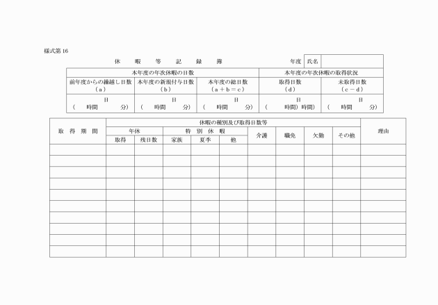 所属長は、時間外勤務代休時間を指定するときは、時間外勤務代休時間処理簿(様式第3)により、60時間超過月の末日の直後の給与の支給日までに行わなければならない。