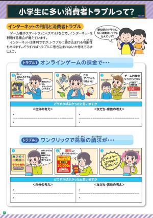 契約の仕組みや小・中学生に多い消費者トラブル事例、エシカル消費等について、漫画やイラ