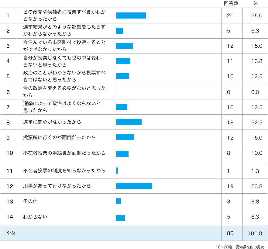 近年、選挙の投票率は低下傾向にあり、特に20歳代の若者の選挙離れや政治に対する無関心が問題になっています。選挙や政治は自分の生活に直接の関係がないとの認識を持っている方もいらっしゃるかもしれません。