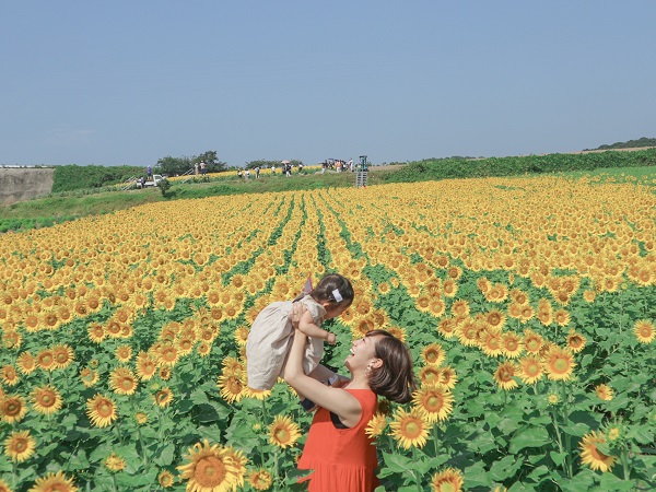 - ひまわりが満開でとっても綺麗だったので、憧れの高い高いでセルフ撮影しました。