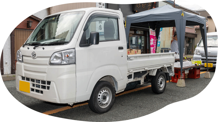 軽トラックの荷台に農産物や食品、衣類などを陳列して販売する「軽トラ市」は全国各地、およそ100箇所以上で開催されています。 中でも岩手県雫石(しずくいし)町、愛知県新城市、宮崎県川南(かわみなみ)町の軽トラ市は「日本三大軽トラ市」に数えられます。新城市の軽トラ市は毎月第4日曜日に開催されており、毎回多くの出店者と来場者を集める人気イベントとなっています。