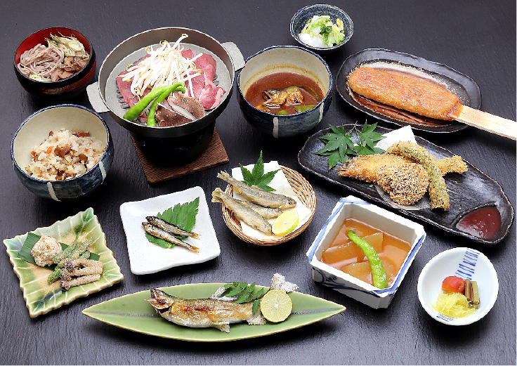 - 宿の楽しみと言えば何と言っても料理です。清水館では、季節の食材と豊根村の特産品を使った料理を、一品一品、ていねいに手作りにこだわって提供しています。その努力が、「清水館と言えば料理が美味しい」という評判を作ってきました。羊の肉を焼肉で食べる「ジンギスカン」料理が昔からの名物で、これを目当てに宿泊する人も多いそうです。