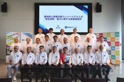 9月19日、セントレアにて、9月18日にアジア競技大会とアジアパラ競技大会のパートナーシップ契約を締結した、中部国際空港株式会社の籠橋代表取締役社長と両大会のパートナーシップ証明書に署名を行いました。