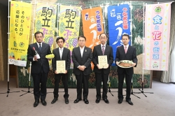 また、対局会場のポートメッセなごやは、来年開催の「アジア・アジアパラ競技大会」の会場の一つであることから、今日は、JT杯とアジア・アジアパラ競技大会がともに大いに盛り上がる期待を込めて、私から、アジア・アジアパラ競技大会の公式マスコット「ホノホン」と「ウズミン」を贈呈しました。