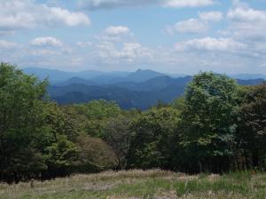 今回の山行で最も展望の良い場所で、奥三河の山々や設楽町納庫の集落が一望できます。