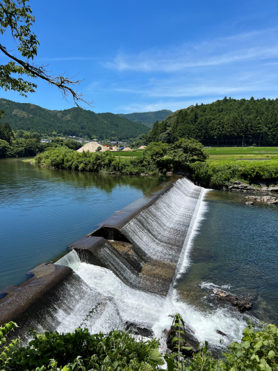 その全長100メートルにも及ぶ余水吐から水が流れ落ちる様子の美しさによって、長篠堰堤は日本三大美堰堤に数えられています。