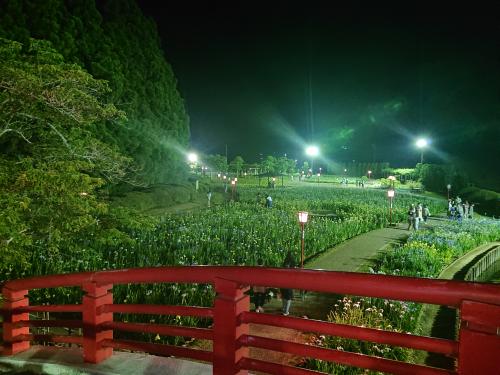 豊川左岸の豊橋市賀茂町にある「賀茂しょうぶ園」です。菖蒲が約37,000株植えられていて、花しょうぶを楽しむことができる毎年5月下旬から6月中旬に「花しょうぶまつり」が開催されます。まつり期間中は夜間も花しょうぶが楽しめます。