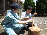 そして、野外炊飯実習では、ナタを使った薪割りや火起こし、刃物や火の扱い方などを学びました。受講生は、野外炊飯のそれぞれの場面に潜む危険性について逐次確認し合うことで、リスクマネジメントについての理解を深めることができました。