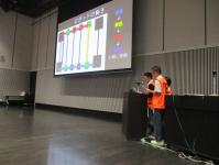 中学生24チーム・64名が参加しました。走行部門では課題のクリア状況やタイムを競い、その後のプレゼンテーション部門では各チームの戦略やロボット製作での工夫を発表しました。
