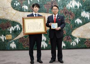 藤井聡太竜王・名人に「愛知県県民栄誉賞」を贈りました