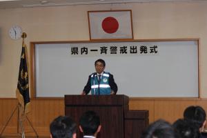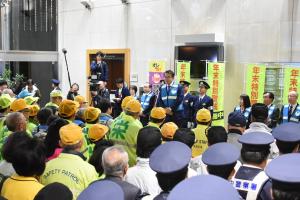 また、当日は、県警察主催による、知事、公安委員会委員及び警察本部長等による県内一斉警戒の巡視等を実施しました。