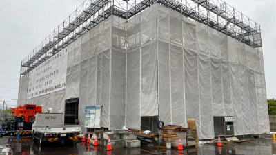 東三河水道事務所新庁舎の完成イメージ 東三河水道事務所新庁舎の建築状況(令和7年4月)