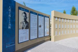 On display in this square are a wide range of materials relating to Mr. Sugihara’s accomplishments, including a bronze statue depicting him handing a visa to a Jewish family, visa lists from Kaunas and Prague, images and records of the Fifth Middle School at the time of his enrollment, records showing his achievements as a diplomat, and a history of the individuals who aided the Jewish refugees.