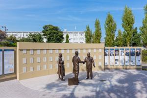 A bronze statue of Chiune Sugihara and a Jewish family: