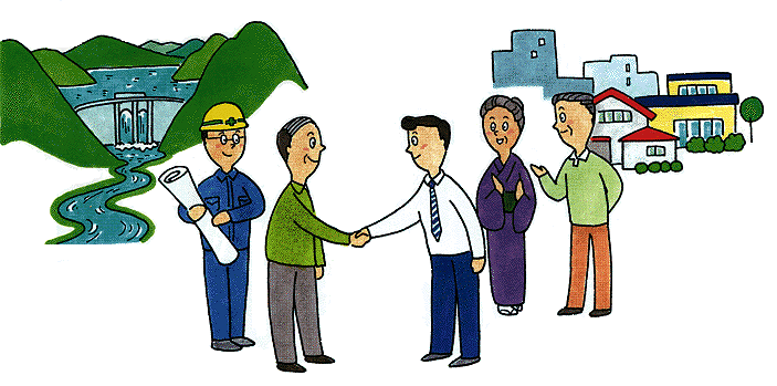 ダムの建設を円滑に進めるためには、水源地域の人々の理解と協力が不可欠ですが、同時に、ダムの水を利用する受益地域の人々の水源地域に対する感謝の気持と連携の姿勢が必要です。