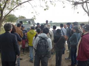 見学内容:バスで長良川河口の利水施設を見学し、長良川の漁師の方から鮎漁や伝統漁法について話を聞く。