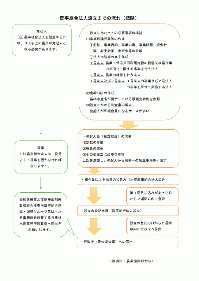 (注)下記の設立までの流れは、概略を示したものであり、実際の手続きと異なる場合があります。