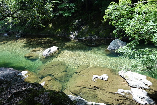 次は「金座淵」です。案内板によると,「古くから子供たちの水泳場として親しまれており、名前の由来は定かではありませんが、泳ぎの合間に「砂金」を探していたことが関係があるのかもしれない」とありました。