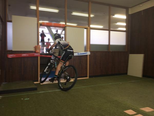 レースは、新城市役所旧庁舎の建物内部とその敷地を使った全長約150mの特設コースで、一周の走行タイムを競うタイムトライアル形式で行われました。