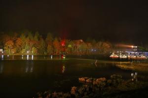 リフトから戻りやはず池へ移動。茶臼山高原は愛知県で一番早く秋がやってくる場所です。やはず池の美しい紅葉のライトアップを鑑賞しました。