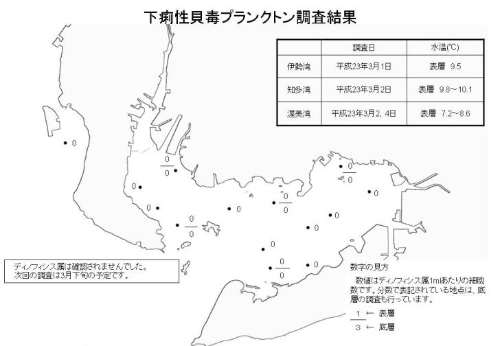 下痢性貝毒プランクトン調査結果(平成23年3月7日)