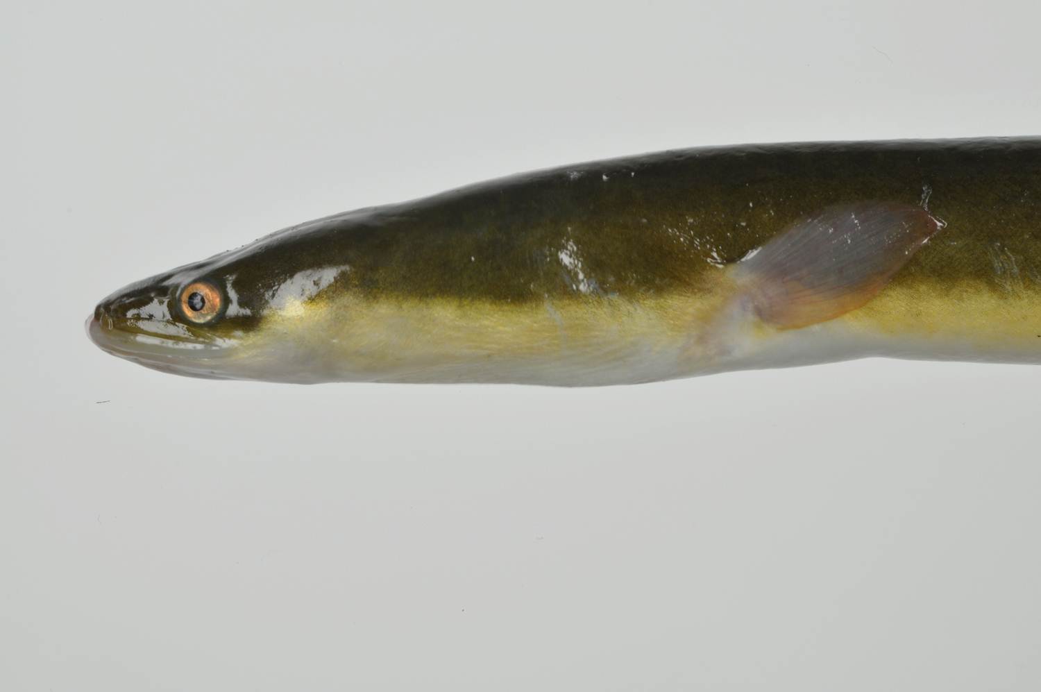川などにいる成熟する前のうなぎは、背中が緑がかっている、腹が黄色い、胸鰭が黒くないといった特徴がありますので、下の写真を参考に「下りうなぎ」との違いを確かめてみてください。