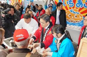 知事のあさり試食PR