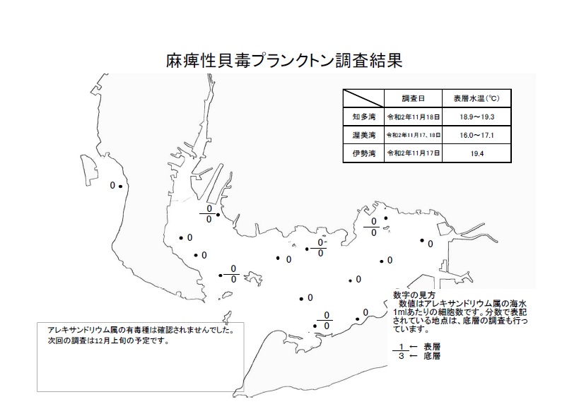 麻痺性貝毒原因プランクトン調査結果(令和2年11月17~18日)