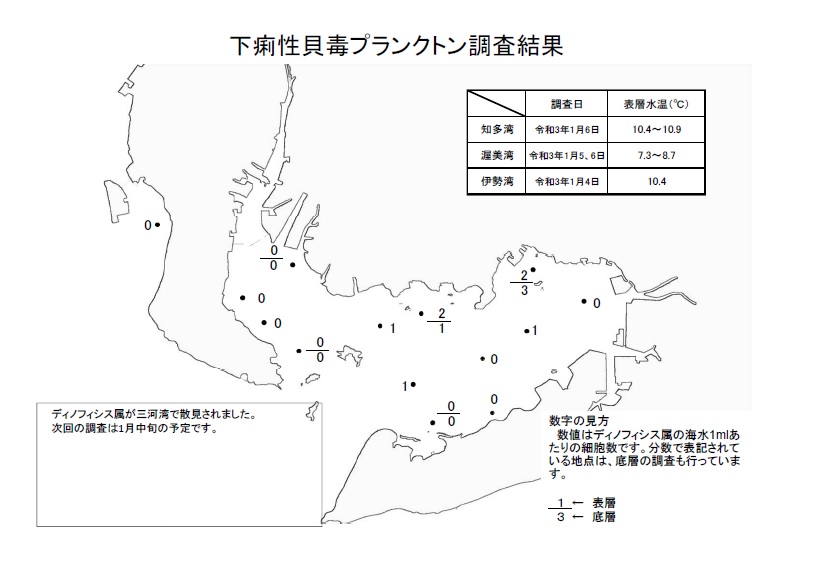 下痢性貝毒原因プランクトン調査結果(令和3年1月4~6日)