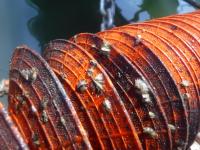 牡蠣の幼生を海中から採取することを「採苗」という。プラスチック製の採苗器を海中に入れておくと、海の中を漂っていた幼生が付着する。この作業は毎年7月中旬から9月中旬まで行われる。