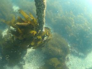 包帯や組紐を用いて移植した配偶体及び幼胞子体から生長したサガラメ(2012年11月9日設置)